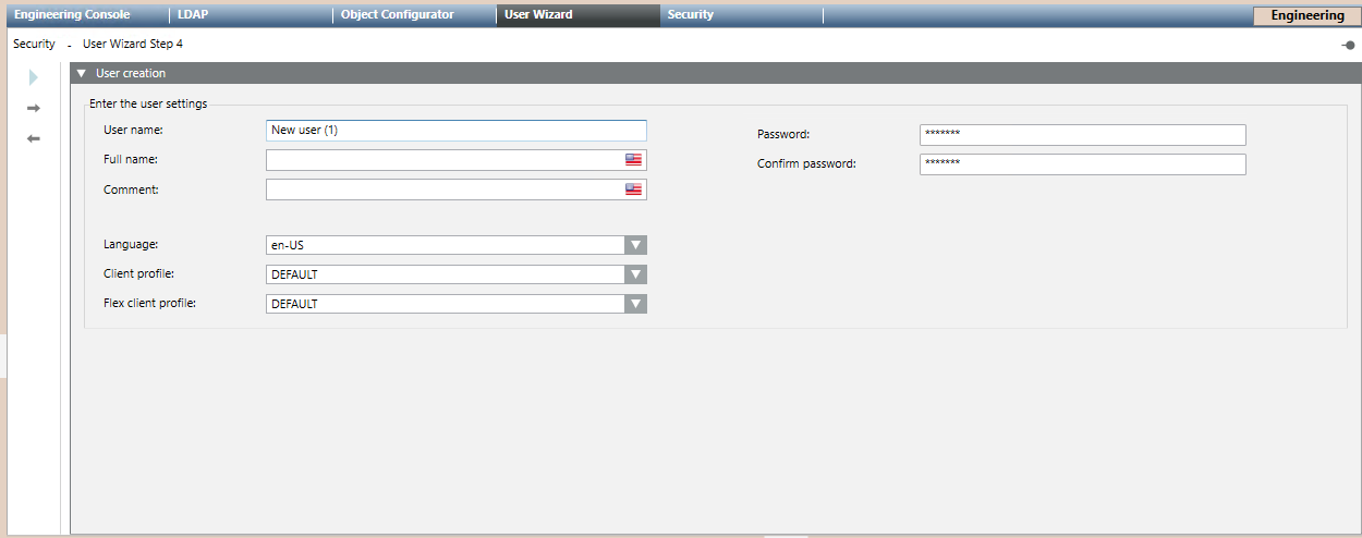 5. Wenn Sie im vorigen Schritt Desigo CC-Benutzer gewählt haben, geben Sie das Passwort des Benutzers ein und wiederholen Sie es zur Bestätigung.