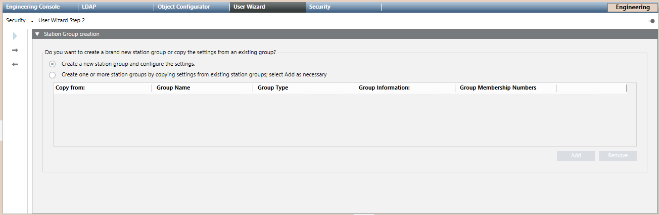 Neue Stationsgruppe erstellenSie befinden sich im Assistenten für die Benutzerverwaltung, Schritt 2 – Stationsgruppe anlegen.Wählen Sie Eine neue Stationsgruppe erstellen und Einstellungen konfigurieren. Klicken Sie .