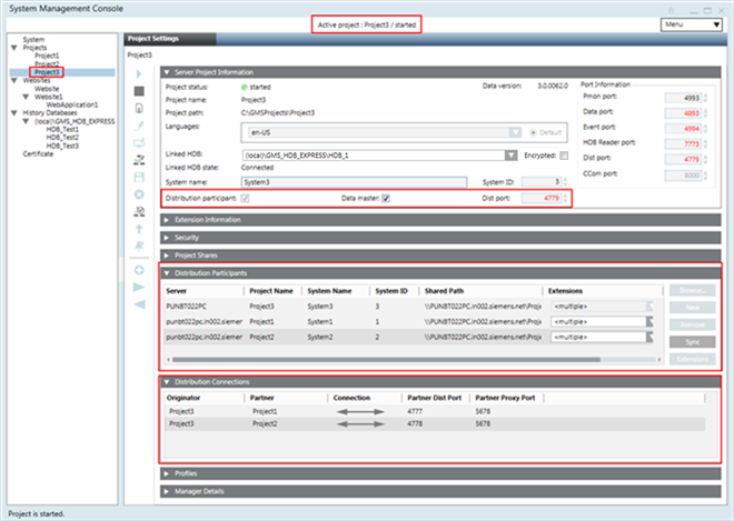 . - Wiederholen Sie die Schritte 7 bis 15, um das dritte Projekt, Projekt3, in der Verteilung mit einem eindeutigen Verteil-Port einzurichten. Fügen Sie dann die Verteilungsteilnehmer Projekt1 und Projekt2 im Ursprungsprojekt, Projekt3, hinzu.