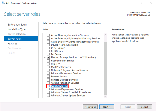- In the Add Roles and Features Wizard dialog box, click Next until Server Roles is selected.