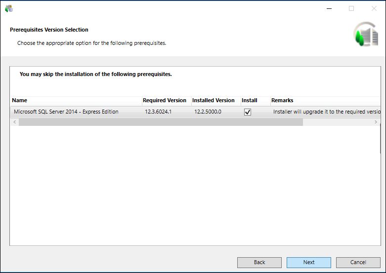 For example, if a higher compatible version of the software is installed, the Installer skips the installation of the prerequisite.