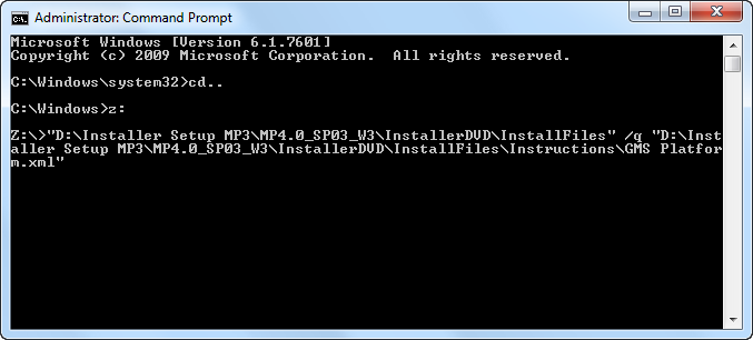 “<Full path of the file Gms.InstallerSetup.exe>” /q <Full path of the silent installation XML>