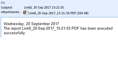 The following is an example of a script you can use to command an email to be sent for a scheduled external application report.