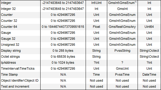 - SNMP Data Typesused and tested with the current version of Desigo CC.