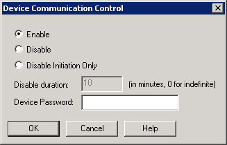 The Device Communication Control dialog box allows you to send a Device Communication Control command to the selected device.