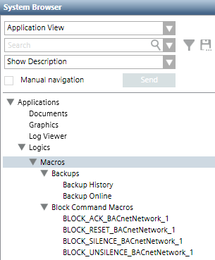 - To add a new instruction (row), drag-and-drop the desired target object from System Browser into the empty area inside the Macro tab. The Manual navigation check box must be selected to do this.