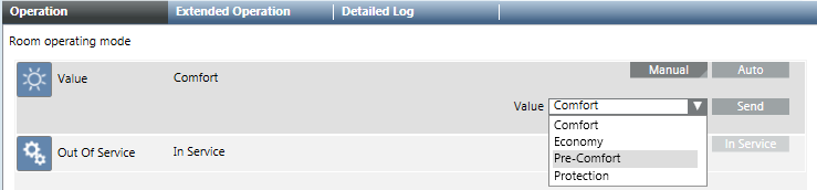 is displayed. - The room operates in automatic mode if not an other manual operating state is active.