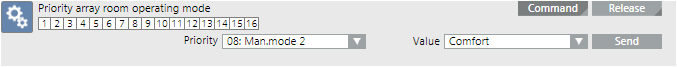 The display arrow indicates an active priority of 1 to 8. At priority 8, you can change the operating mode, for example, Protection to Pre-Comfort.