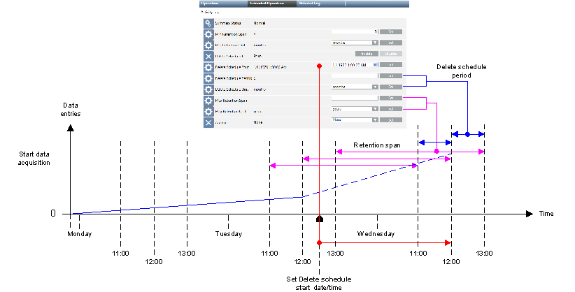 Max Retention Time of Data in the STS | Min Retention Span | Max Rentention Span | Delete Period |