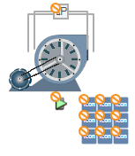 Let us consider, for example, a data point used to control the fan from a ventilation plant. The Graphics Generator selects the correct symbol based on the function designation FN=Fan1St (single-stage fan). The instance designation AN=FanSu (Supply air fan) indicates that the fan symbol must be drawn in the supply air duct.