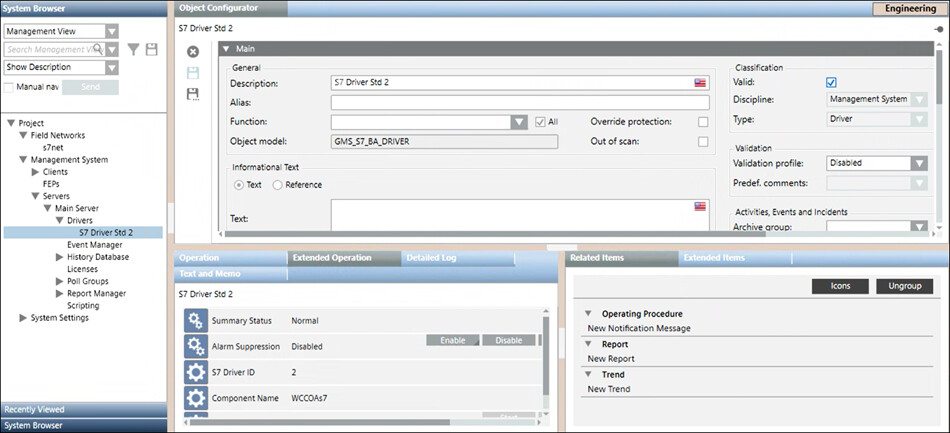 The details of the Standard S7 Driver display in the Object Configurator tab.