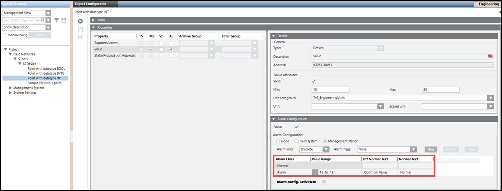 - AlarmValue: The value, or range of values, for which an alarm is to be issued.