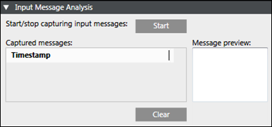 - Start/stop capturing input messages: Allows the start and stop of message capturing.