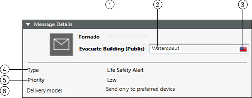 1 | Name of the message template | Displays the name of the message template. For example, Evacuate Building (Public). |