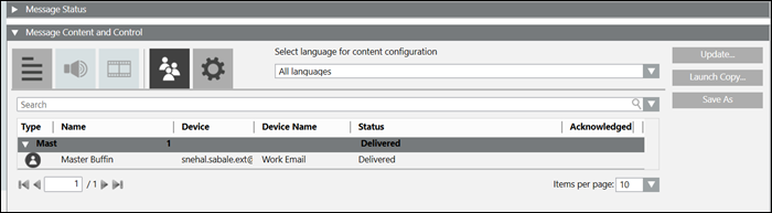 - Acknowledged: Displays the acknowledgment status of the recipient for the message with acknowledgment settings configured.
