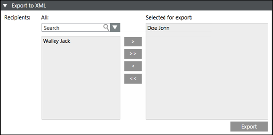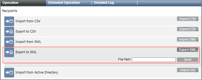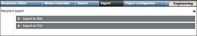 The Export From XML using the Command feature allows you to export all recipients in the Notification to an XML file through automatable Desigo CC commands.