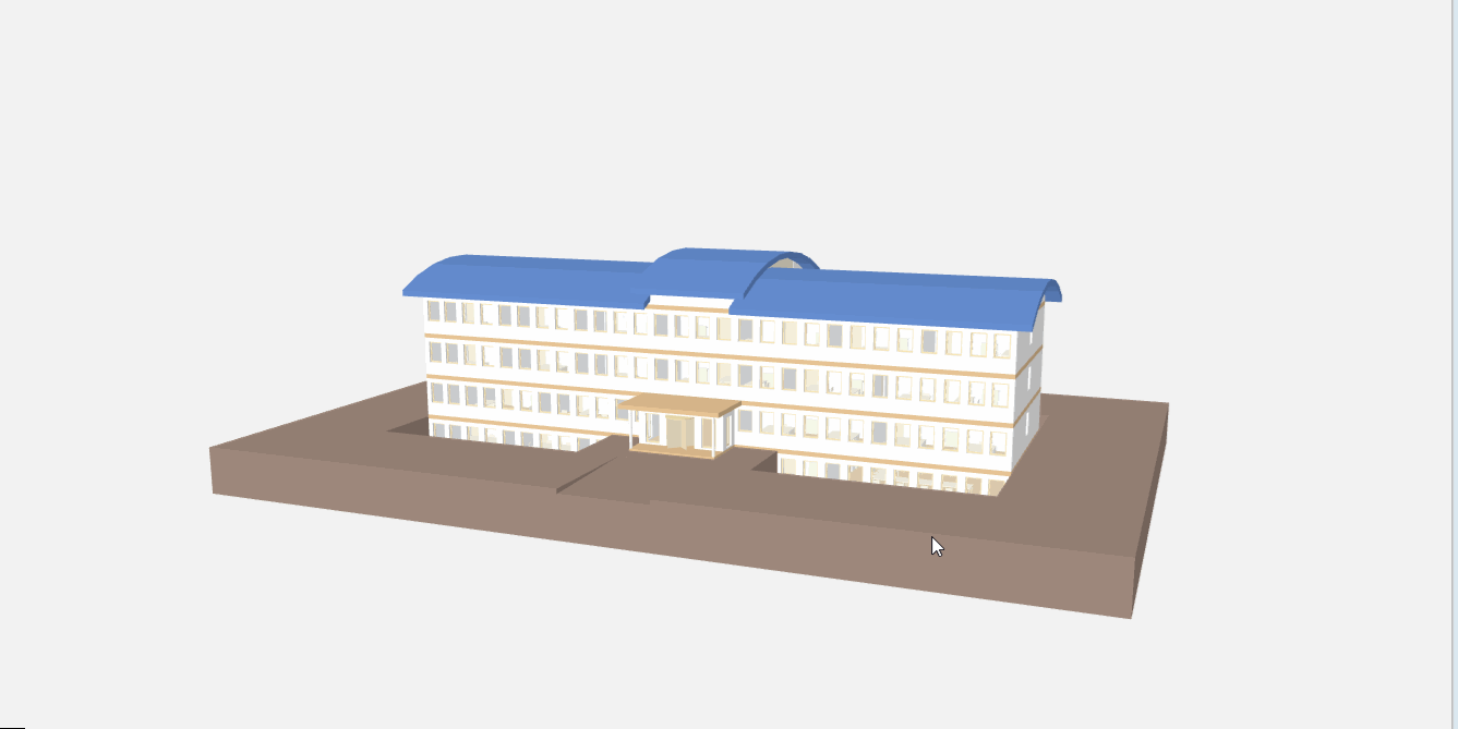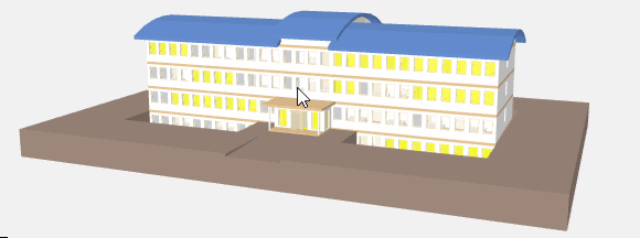 - At a perspective some distance from the building, the camera moves around the building, in other words, the building appears to revolve on its own axis. The center of the rotation is the point that you selected with the right mouse button.