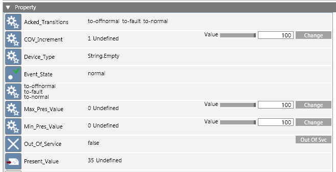 - Property: By default, any additional BACnet properties not displayed in any other sections of the BACnet Object Editor display in this section.
