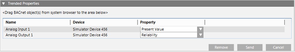 - Trended Properties: Displays the properties that a Trend Log or Trend Log Multiple collects.
