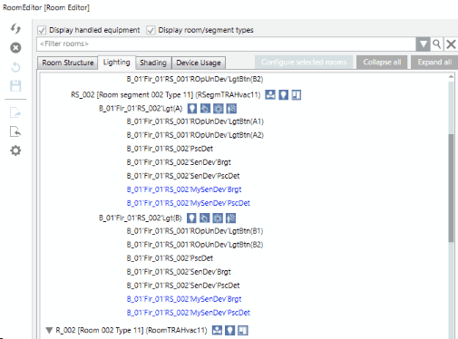 - There are device names in the room manager editor's room information list that deviate from default naming. Unknown device names are indicated in blue font.