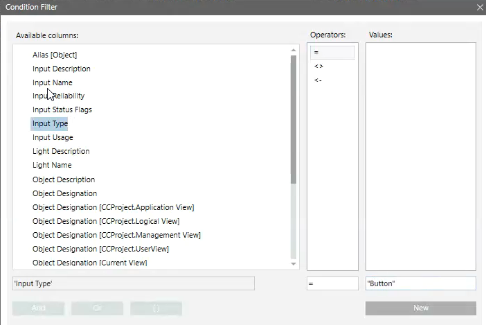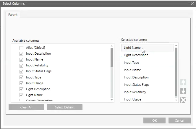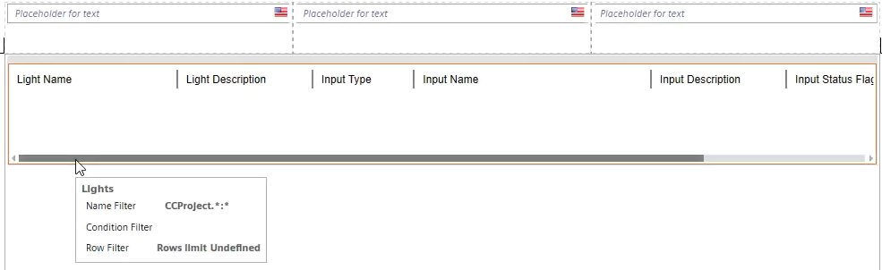- Select Table and, in the drop-down list box, select Lighting. Drag the selected Lighting list box to the empty report definition.