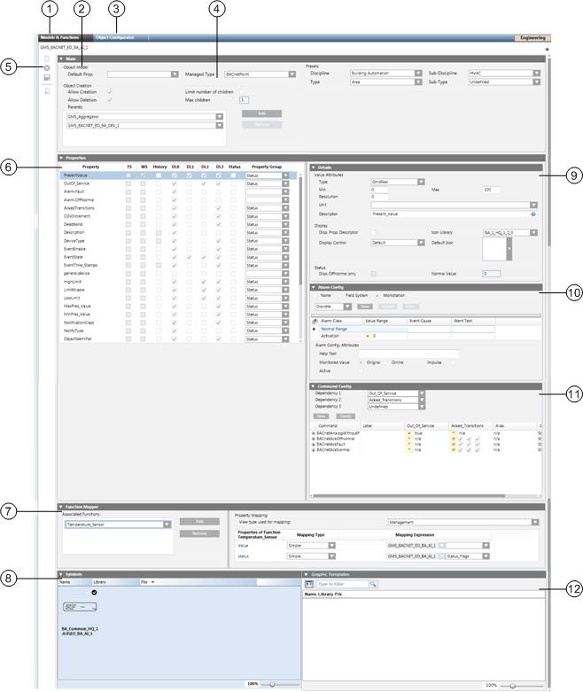When you select an Object Model in System Browser, the following configuration workspace becomes available in the Models & Functions tab.