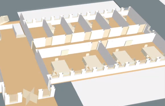 - The doors are highlighted in color.