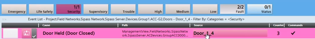 Scenario: Progress is displayed in the Summary bar. You need to know the exact location of the door before acknowledging the event. This workflow can be used on all events for a given door.