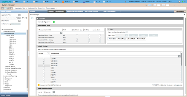 In Engineering mode, when you select the Powermanager root node, you must first configure the parameters of the System Configuration tab that displays by default.