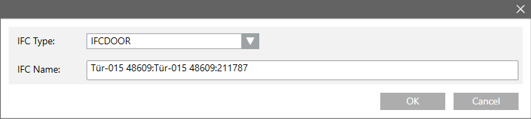 2. Displays the associated BIM object. The IFC Name column references the door object. The BIM object model IFCDOOR displays in the IFC Type column.