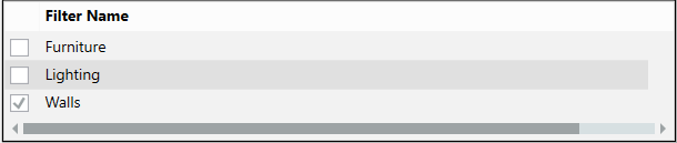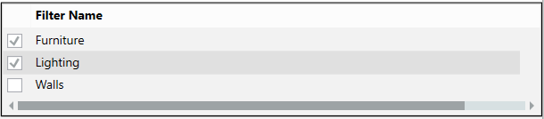 - In the Filter Name dialog window, select Lighting and Furniture.