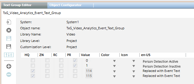 - In System Browser, select […] > Libraries > L1-Headquarter > Video > Video > Text > TxG_Video_Analytics_Event_Text_Group.