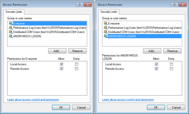 c. Click OK. - In the Launch and Activation Permissions section, click Edit Limits, and do the following: