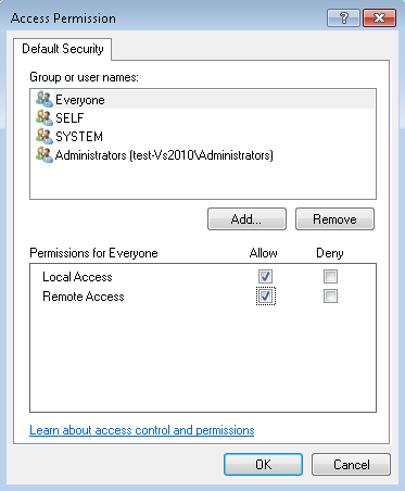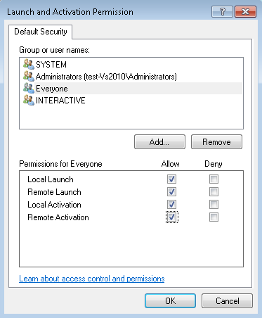 c. Click OK. - In the Launch and Activation Permissions section, click Edit Default.