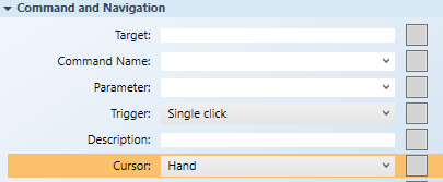 - With the dropdown command still active on the canvas, navigate to the Command and Navigation property, from the Cursor drop-down menu, select the cursor type you want to display when the mouse is placed over the command control in runtime mode.