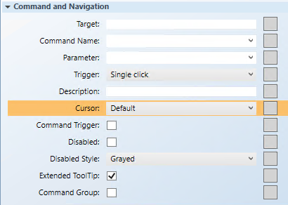 - The Extended Tooltip check box is selected by default. It displays the following command object details: Target, Command Name, and Parameter. If enabled, the extended tooltip is added to any existing tooltips configured for the element.