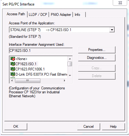 - In the Access Point of the Application drop-down list, select CP1623.ISO if the fault-tolerant connection runs via MAC address (for example, CP443-1EX11).
