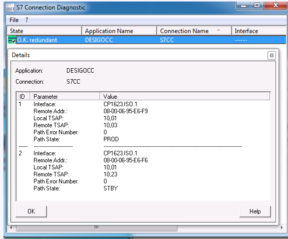 NOTE: The state of the fault-tolerant connection can be checked on the SIMATIC PC-Station under S7 Connection Diagnostics.