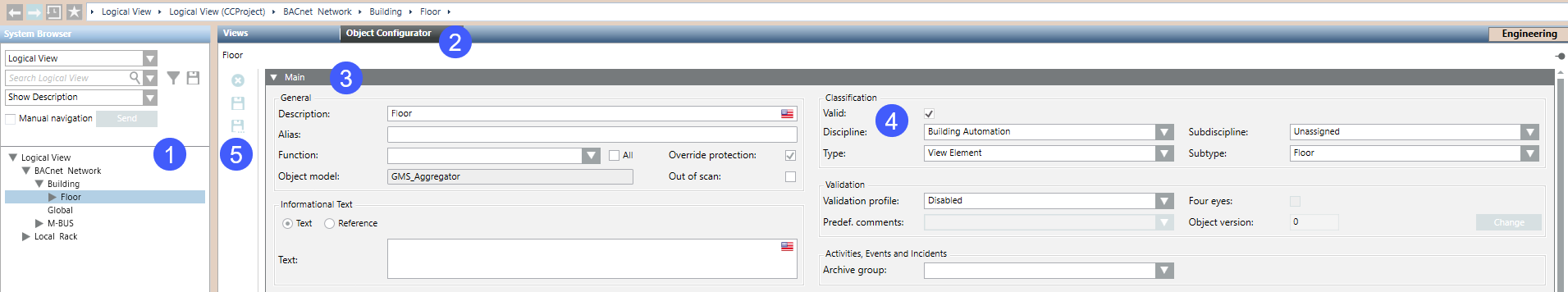 - Select Logical View > [subsystem name] > [building name] > [floor].