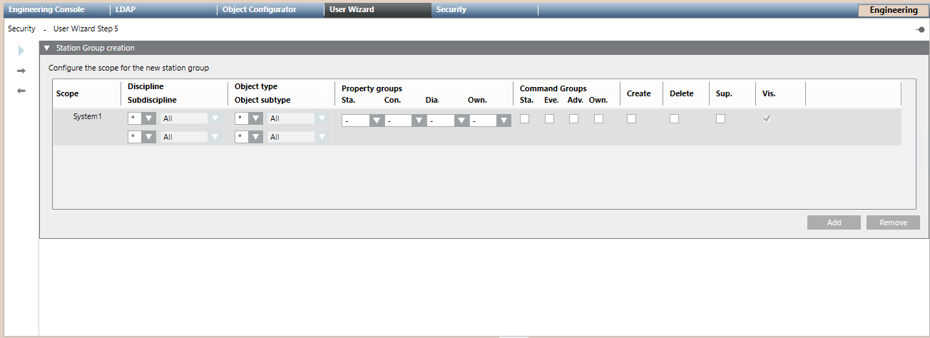 1. You are in the User Management Wizard step 5 – Station group creation.