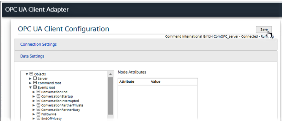 NOTE: For more detailed instructions, see "Performing OPC UA Client Adapter Online Configuration".