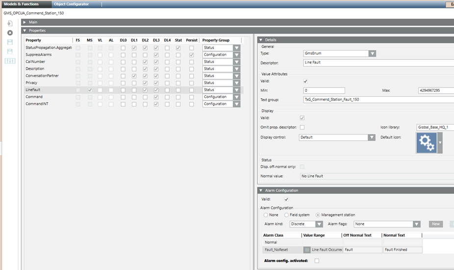 - Under Alarm Configuration, select the Valid check box and then Alarm config. activated.