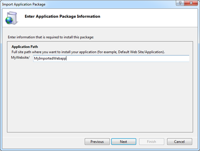 5. Browse for the exported web application zip file on the target machine and click Next.