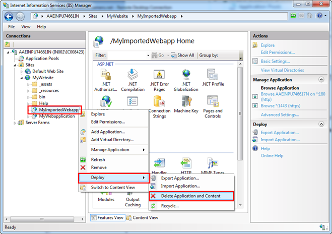 2. Right-click the web application you want to delete, and select Deploy > Delete Application and Content.