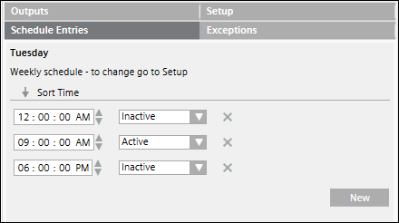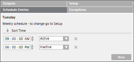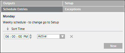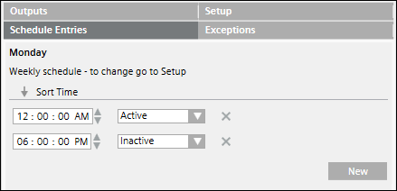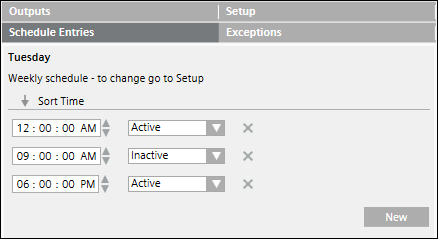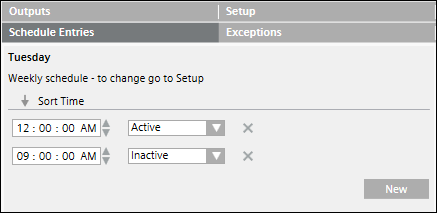 In the case of a weekly schedule, specify the Active or Inactive values only once. These values are applicable for the entire week and for the complete duration of the schedule.