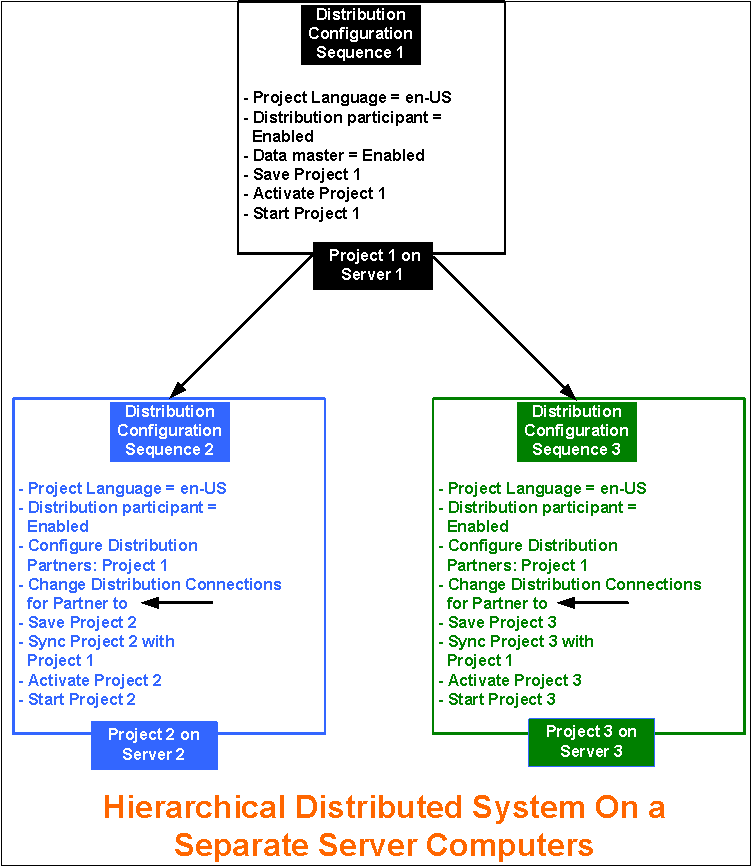 - Repeat steps 10 to 22 to set up Project3 on Server3 in distribution with Project1 on Server1.