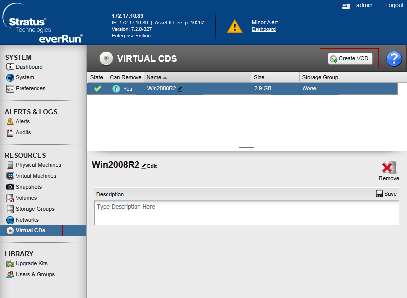 To create a VCD, use the Virtual CD Creation Wizard to copy an ISO file to a storage device on the everRun system. Thereafter, you can boot from it.