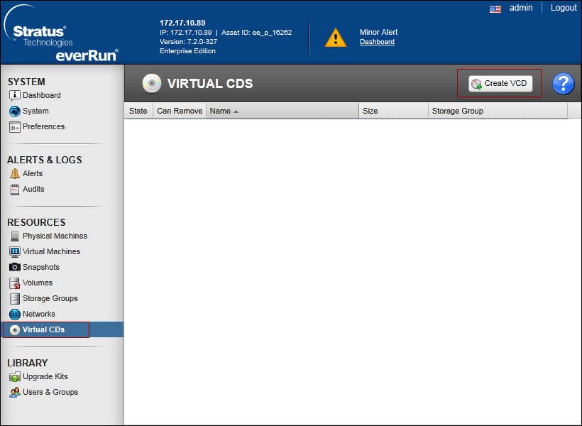 - The Virtual CD Creation Wizard reports that the VCD has been successfully added, but transferring the image may take several more minutes depending on the size of the image. You can determine the status of a VCD by checking the State column on the Virtual CDs page:
