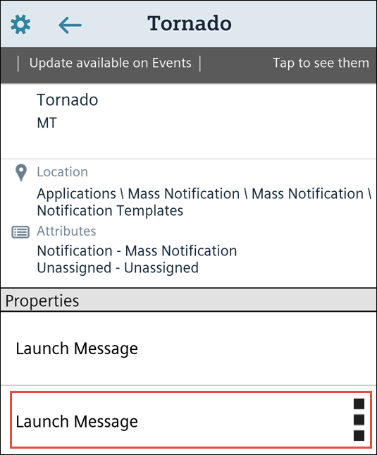 To select a message template, select Applications > Notification > Notification Templates > Message Templates. Selectthe required message template from the list of available templates. For example, Tornado.