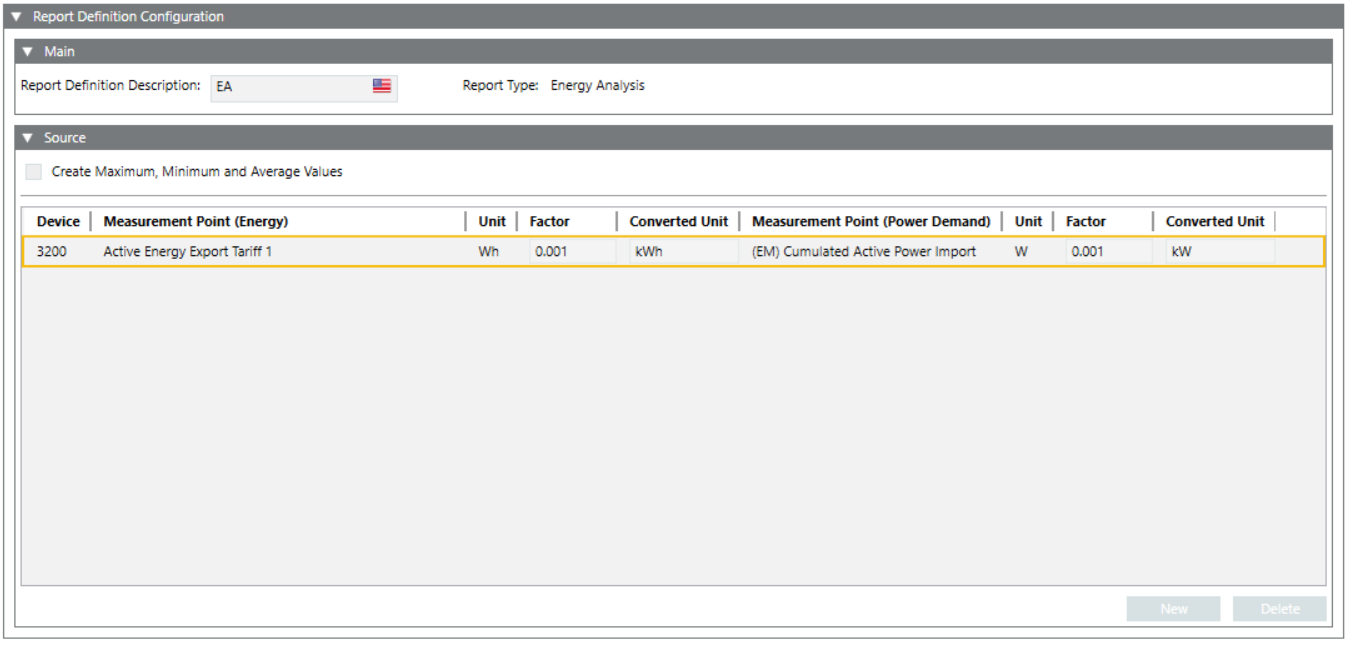 Select the required measurement point for which the report needs to be generated from the drop-down list under the Measurement Point (Energy) column.